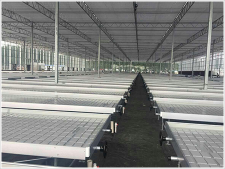 為了保證良好的灌溉效果,潮汐灌溉系統(tǒng)對栽培床的工作面要求較為嚴(yán)格,必須保證水分能自由地在灌溉區(qū)流動(dòng)。與此相似,當(dāng)灌溉完成時(shí)栽培容器內(nèi)多余的水分必須回收到栽培床上,也就是從栽培容器回收到回液箱中。栽培床表面必須非常水平才能確保水分在灌溉域的良好澆灌--使所有栽培容器中的基質(zhì)在同一時(shí)間加濕,多余的水分在同一時(shí)刻回收。