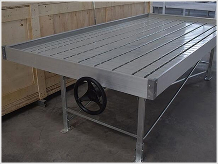 潮汐式苗床的特點(diǎn)主體結(jié)構(gòu)材質(zhì)采用鋁合金邊框,骨架采用整體熱鍍鋅工藝,可左右移動(dòng)較長(zhǎng)距離,高度方向上可以進(jìn)行微調(diào),有利于潮汐式灌溉準(zhǔn)確控制水位,具有防翻限位裝置,防止由于偏重引起的傾斜問題??稍谌我鈨蓚€(gè)苗床間產(chǎn)生約0.6米的作業(yè)通道。苗床設(shè)計(jì)***大承受荷載40kg/㎡,本款苗床為潮汐式灌溉系統(tǒng)專門設(shè)計(jì)。